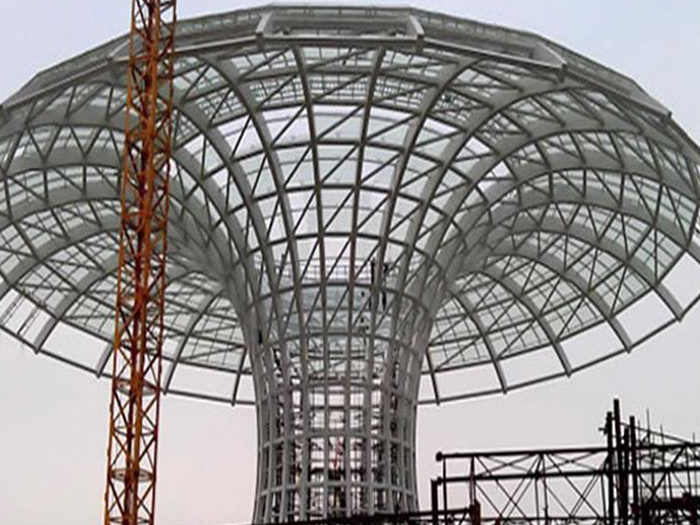 二、球形网架结构因其结构新颖,受力合理,自重轻、用钢量低等优点。如大型体育场馆球形临沧螺栓球网架、公共场馆球形网架、电厂临沧螺栓球网架、水泥工业球形网架、仓储物流球形网架、临沧干煤棚工业球形网架、临沧收费站临沧加油站球形网架、展览中心、影剧院、商场、航站楼、候车厅、工厂临沧车间、仓库、电视塔等球形螺栓球节点网架。国内球形网架结构主要分为:临沧焊接球节点网架及螺栓球节点网架两种。螺栓球节点网架其构件工厂内加工量较大,现场安装便捷,适用于现场工期紧,临沧施工条件、用电量受制约,网架形状复杂、临沧杆件定位困难的异形结构。螺栓球节点球形网架系统基本由临沧杆件、螺栓球、支撑支座等组成。按照节点形式可分为交叉临沧桁架体系、四角锥体系、三角锥体系等。支撑方式多为固定支座支撑。对于大面积、大跨度及有特殊受力或伸缩要求的网架结构可采用橡胶支座、滑移支座、球铰支座等支撑形式,以满足结构自身的受力稳定、均衡,便于内力释放等设计要求。